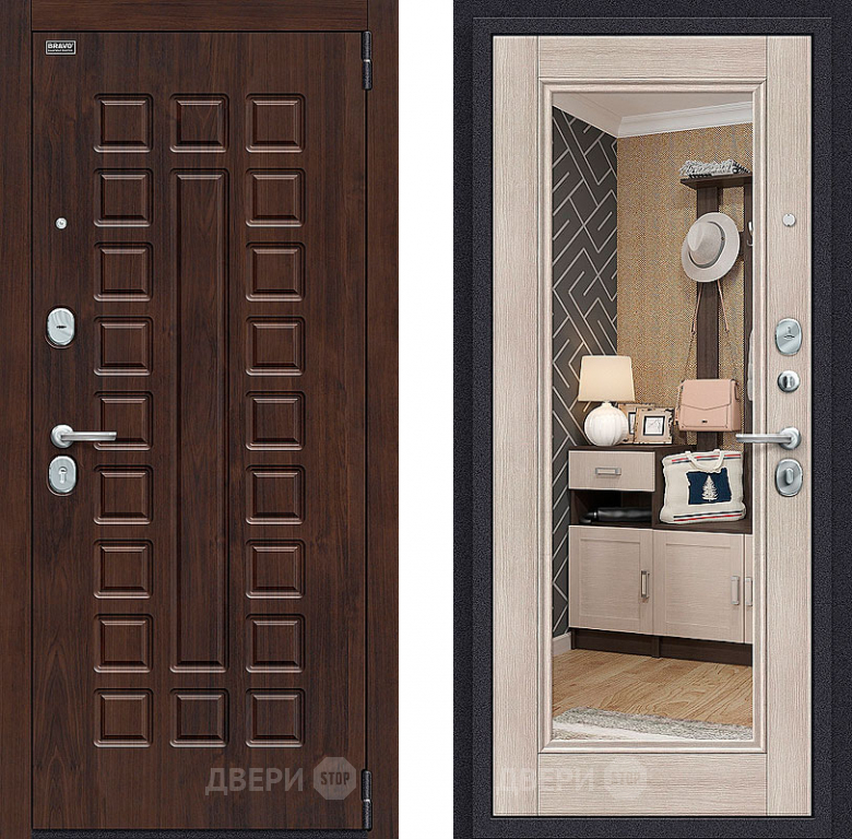Входная металлическая Дверь Bravo Оптим Урбан с зеркалом Cappuccino Veralinga в Красноармейске 860х2050 мм