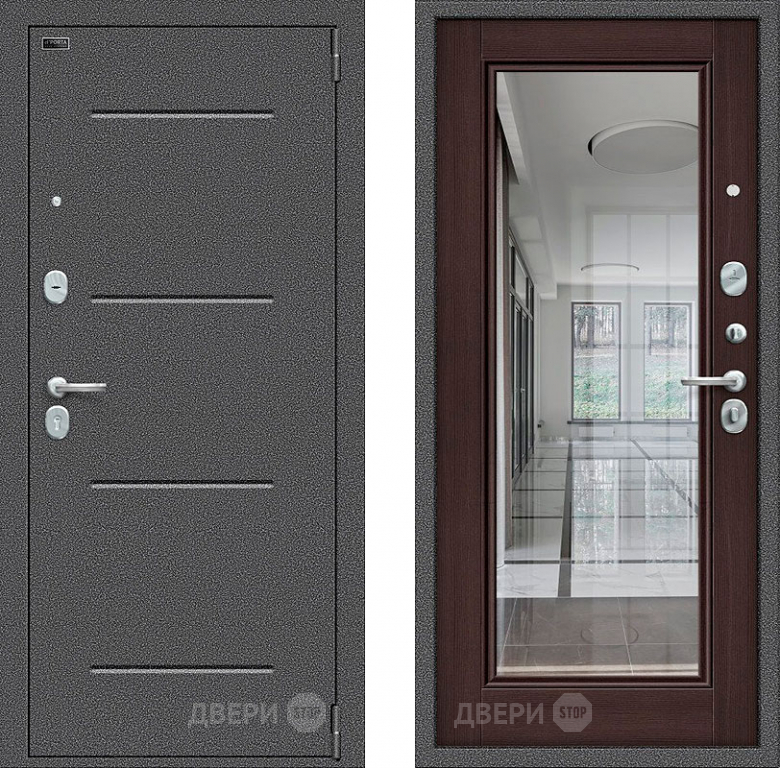 Входная металлическая Дверь Bravo Porta S-2 104/П61 с зеркалом венге в Красноармейске 860х2050 мм