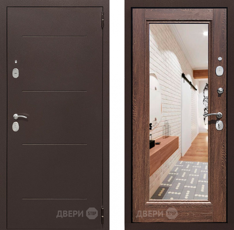 Входная металлическая Дверь Престиж 100 с зеркалом Медь/Дуб филадельфия коньяк в Красноармейске 860х2050 мм