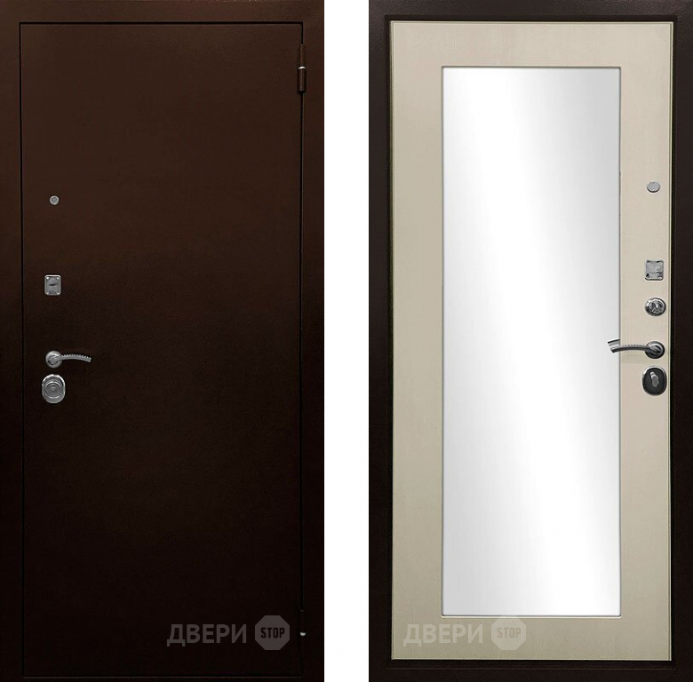 Входная металлическая Дверь Ратибор Оптима 3К зеркало Лиственница беж в Красноармейске 860х2050 мм