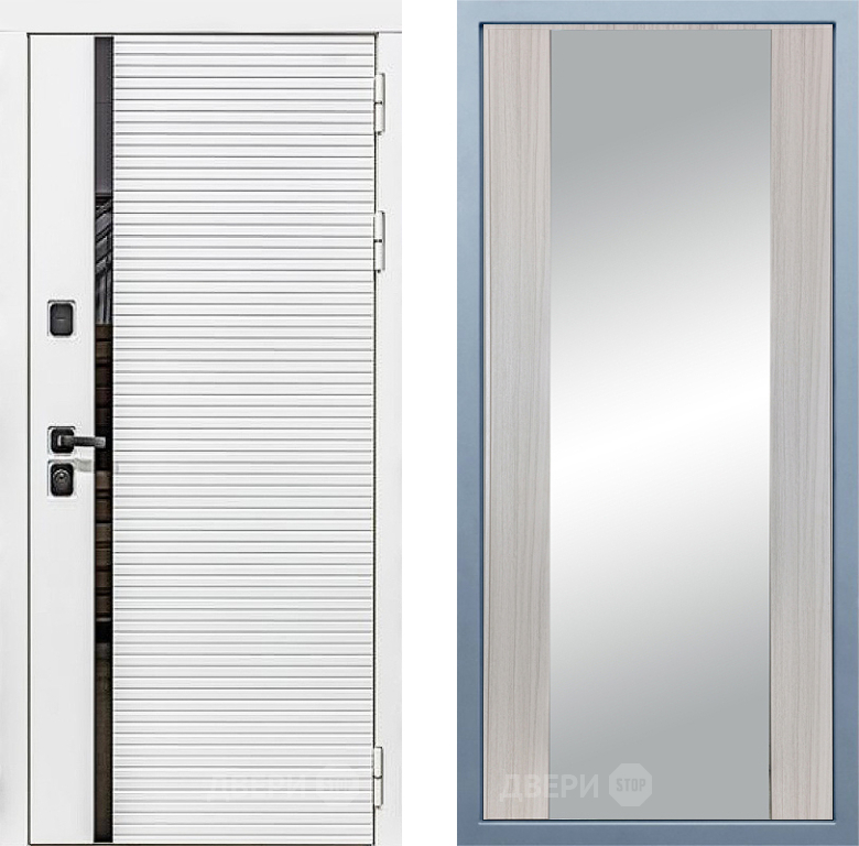 Входная Дверь Дива МХ-45 Белая STR Д-15 Зеркало Сандал белый 860x2050 мм