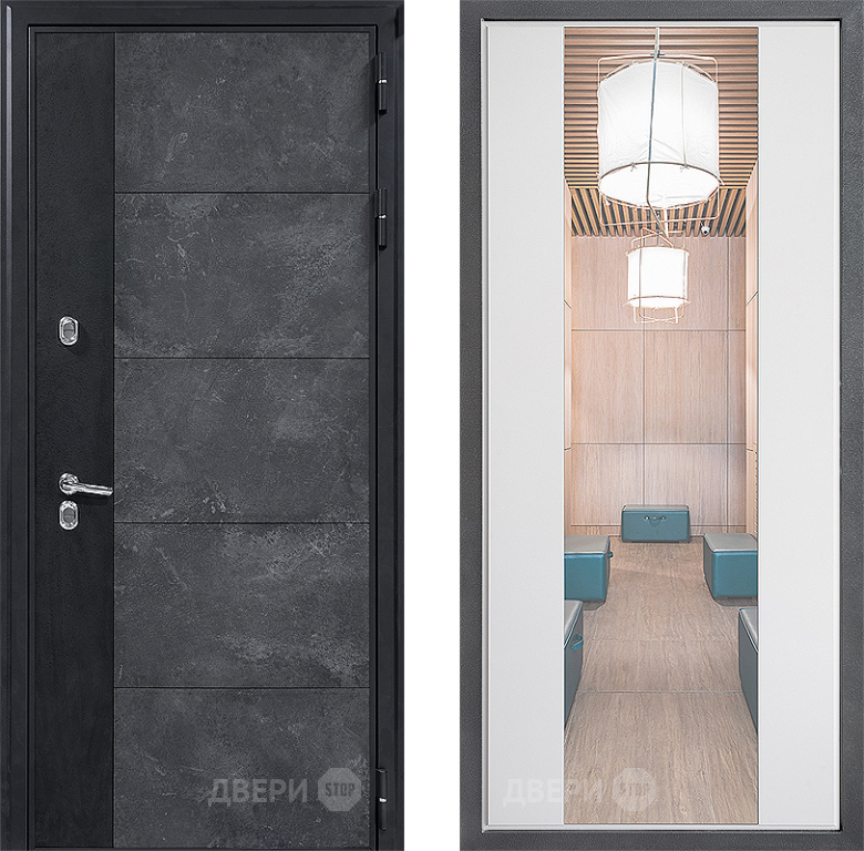Входная Дверь Дверной континент ДК-15 Бетон ТЕРМО ФЛЗ-1 Зеркало Белый софт 860x2050 мм