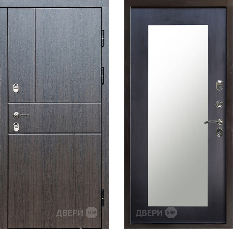 Входная Дверь Престиж TERMO с терморазрывом Горизонт Венге Зеркало пастораль Венге 860x2050 мм