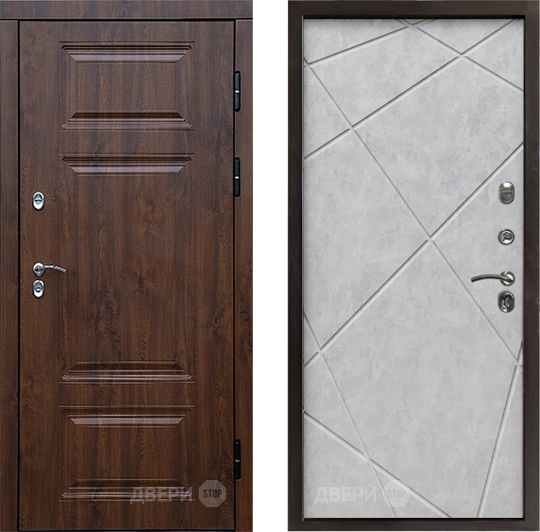 Входная Дверь Престиж TERMO с терморазрывом Премиум Орех Лучи Бетон светлый 860x2050 мм