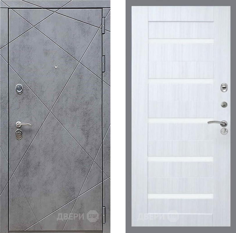 Входная Дверь Рекс (REX) 13 Бетон Темный СБ-14 стекло белое Сандал белый 860x2050 мм