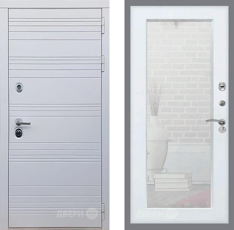 Входная Дверь Рекс (REX) 14 Силк Сноу Зеркало Пастораль Силк Сноу 860x2050 мм
