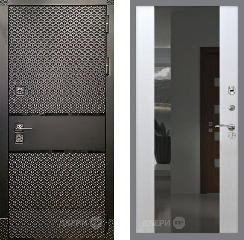Входная Дверь Рекс (REX) 15 Черный Кварц СБ-16 Зеркало Белый ясень 860x2050 мм