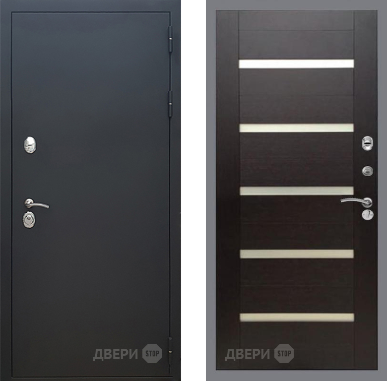Входная Дверь Рекс (REX) 5 Черный Муар СБ-14 стекло белое венге поперечный 960x2050 мм