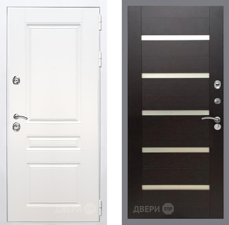 Входная Дверь Рекс (REX) Премиум-н Силк Сноу СБ-14 стекло белое венге поперечный 860x2050 мм